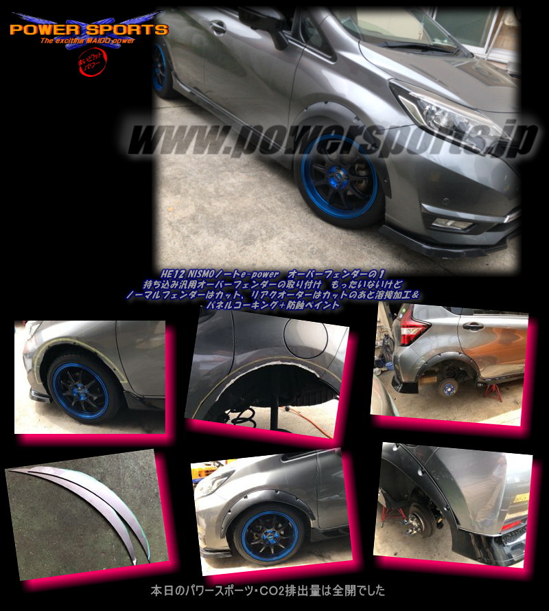 | ニッサン・ノートe-power 汎用オーバーフェンダー取り付け なんと前後フェンダーカットまで |