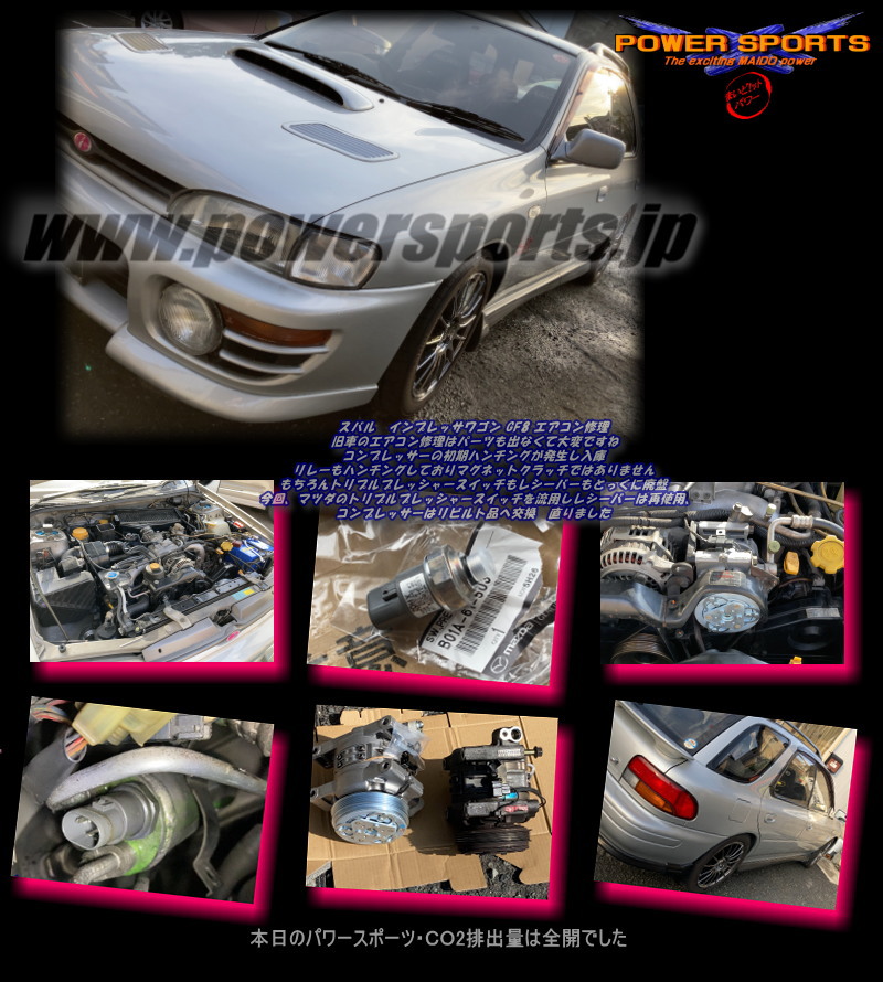 | GF8インプレッサワゴン入庫 真夏のエアコン強化 純正パーツは順次廃盤 流用修理です |