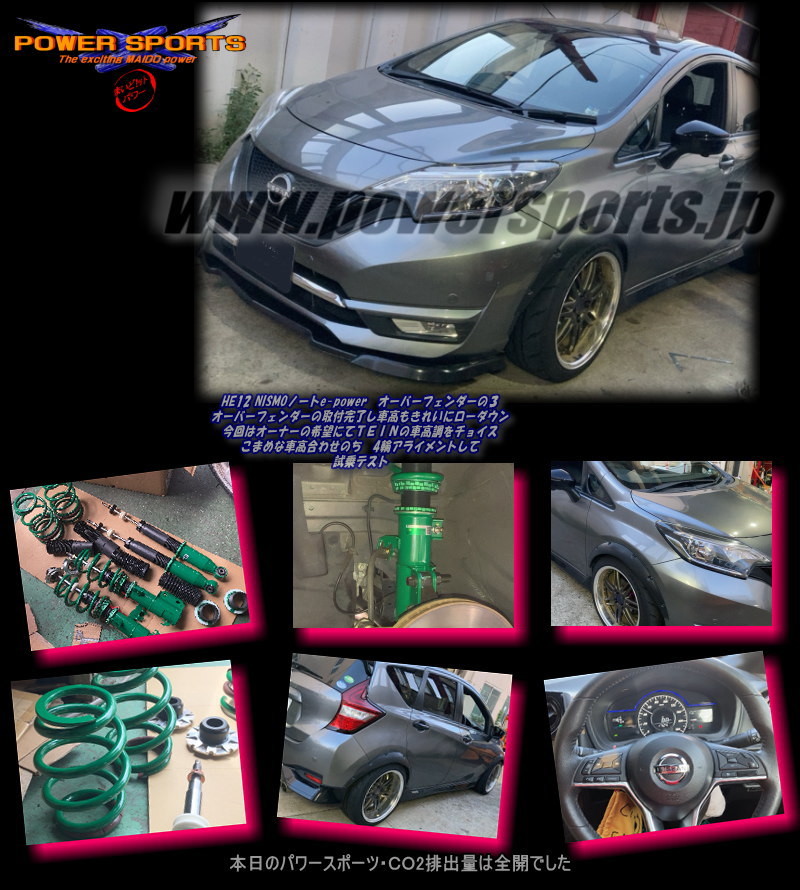 | ノートe-power TEIN車高調取り付け 汎用オーバーフェンダー次は車高調 |