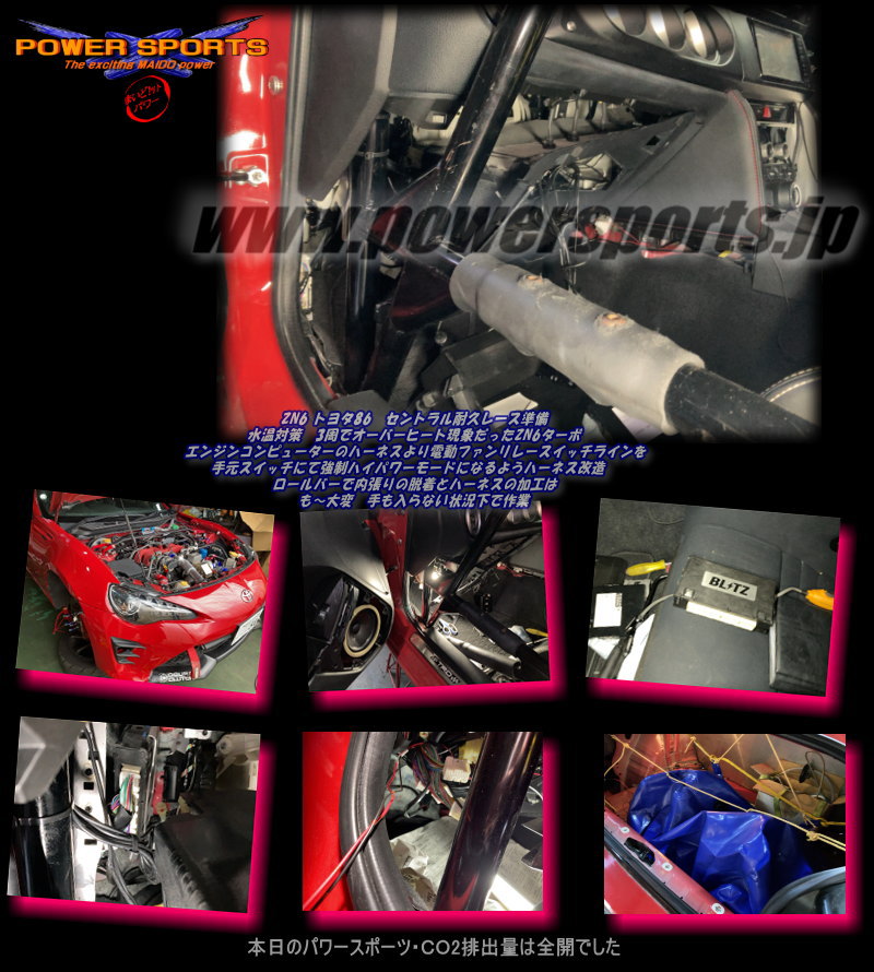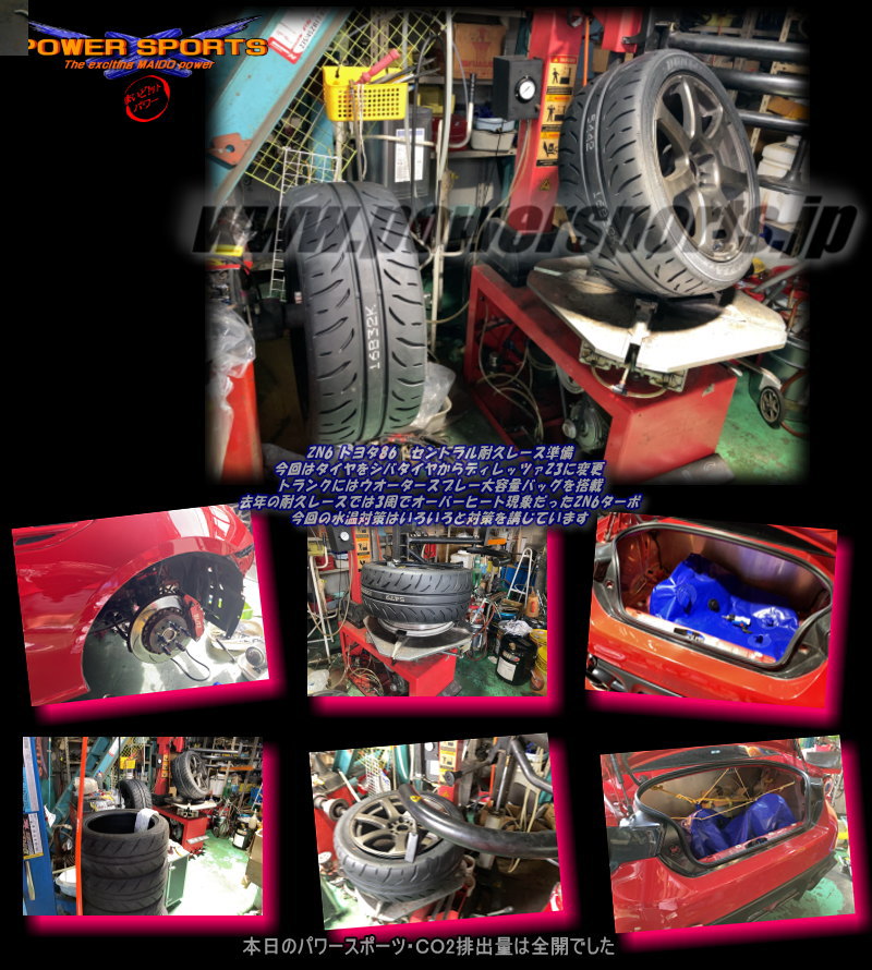 | ZN6ターボ セントラル耐久作業にて入庫 タイヤ、油脂類はさておきクーリング対策最重要 |