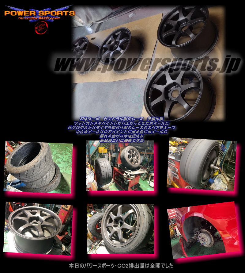 | 耐久レースに向け タイヤ交換 前回シバタイヤR200、今回はディレッツァZ3で挑みます |